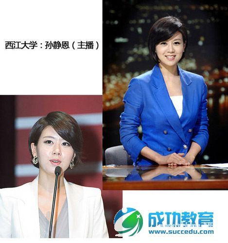 西江大学是韩国排名前十的综合性大学。代表性明星不多,MBC知名主播孙静恩便是一位。她和中国主播一样,常以西装出镜,仪表端庄大方,显得十分的知性。