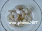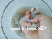 2、虾去壳、虾线,用盐和料酒反复抓洗几次。