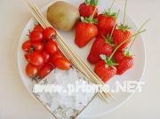 1、材料:草莓、番茄、猕猴桃、冰糖、竹签