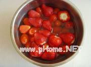 2、草莓、小番茄放入淡盐水中浸泡10分钟,去蒂清洗干净。