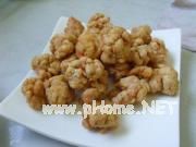 5、油烧八成热,下肉团炸微黄,捞出来,继续烧油,再下入一次。