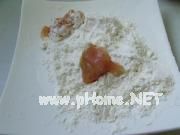 4、肉均匀的沾一层粉,用手拍打掉多余的面粉,全部沾好备用。