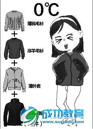 小编只能说,薄棉衣、毛衣、羽绒分别代表多少度你们都记住了吗?总之我是没记住。我这样说你们明白吗?不实用啊!谁会记得这么多?!而且每个人对不同温度的寒热感觉不同,有些人在15度穿一件薄棉衣,一件棉外套就够;有些人要多加一件毛衣甚至羽绒服。