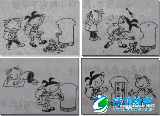 当孩子们认识这是多幅图作文以后,家长们就要带着孩子一起观察图片,首先家长先让孩子们知道哪一幅图是第一副图,这个孩子们都知道。妈妈这时候就要问孩子们第一幅图有哪些东西,让孩子们写在图片上(第一幅图有:一个小男孩,一个小女孩,一个垃圾箱,一些垃圾)一般孩子们就只会说有这些,这时候妈妈要教会孩子们细致观察,妈妈问:“宝贝,你好好观察一下,都有哪些垃圾呢?(有苹果核,纸团,如果孩子看不出来可以让孩子想象一下有哪些垃圾,也可以让孩子看看自己家的垃圾箱,最要提醒孩子看到的是在垃圾箱的箱口处有一个香蕉皮,这个地方家长要拿出笔让孩子们圈出。)