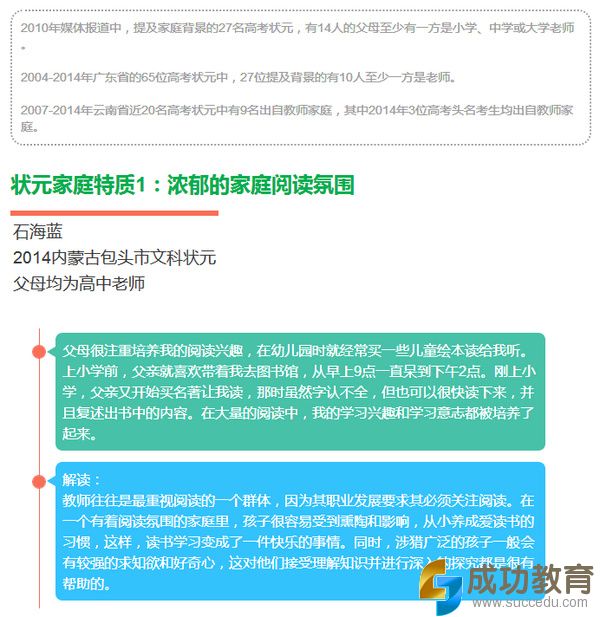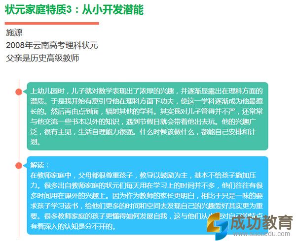 虽然我们并不鼓吹“状元”理论,单论状元家庭的特质,也确实存在一些令人深思的共性: