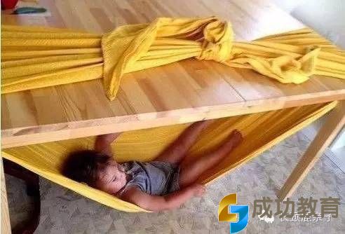 这个聪明的玩法小孩子的父母可以借鉴,床单+桌子就是孩子天然的摇椅,乐趣十足。