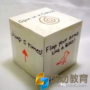在正方型的纸盒六个面上分别写下六个不同的小活动,(可以是身体的动作或者是即兴的小表演),扔到哪面就必须按照提示进行表演,非常适合家庭聚会哦!