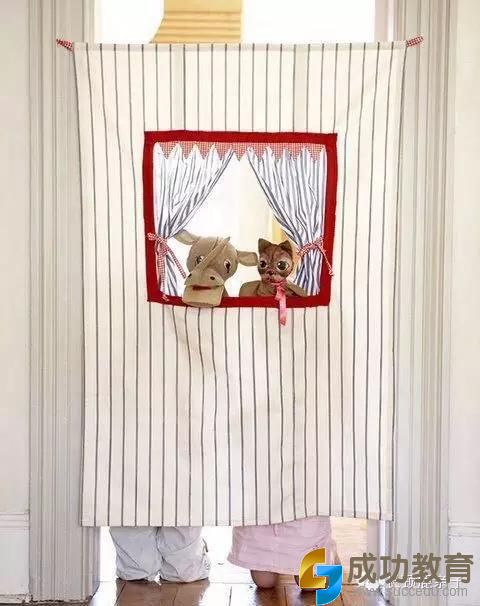 找一块床单,diy成一个简单的小幕布,让孩子们带着他们的小手偶来进行绘声绘色的表演吧,要鼓励他们尽情想像来创造吧,其乐融融的家庭亲子时光,多美妙。