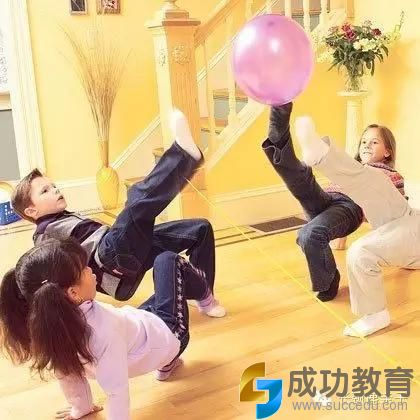 这个游戏适合多个孩子一起参加,注意要用脚去击球,很锻炼孩子们的身体协调能力。