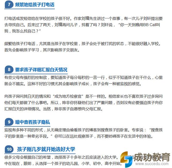 以上十条各位父母多多少少都会中枪。父母怎么可能不关心孩子学习生活?可插手太多很有可能适得其反。