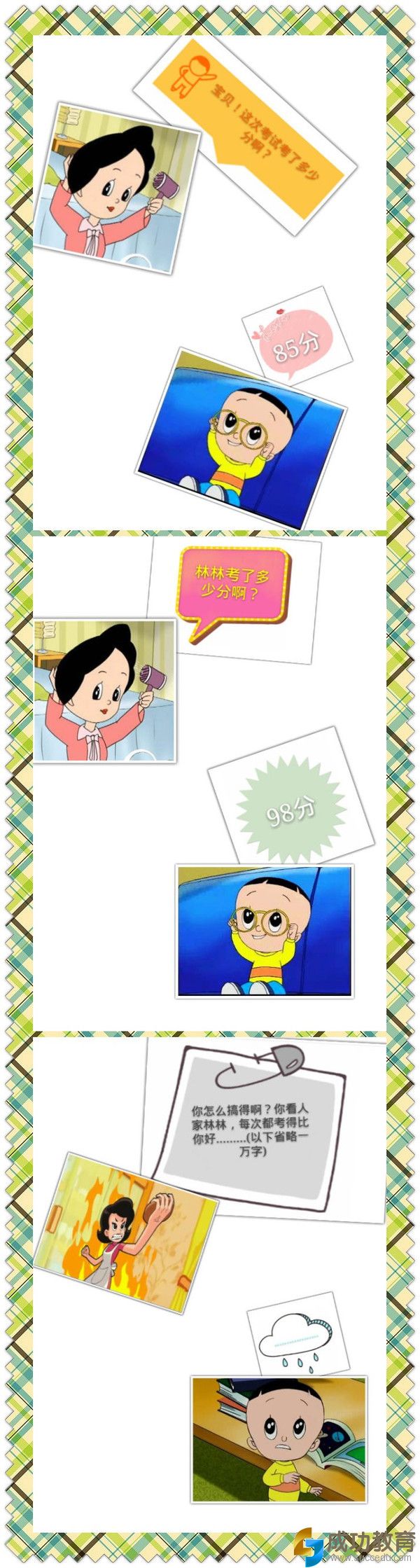 任何一个孩子来到这个世界上都是独一无二的存在,我们的父母需要做的是发现他们的这一份与众不同并学会欣赏它,这一点我们的妈妈们应该跟孩子学习,孩子们也没有把您和别人的爸爸妈妈进行对比不是吗?不管你们怎么样,他们都一样爱你们啊!