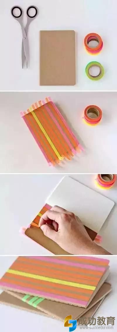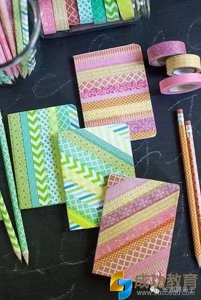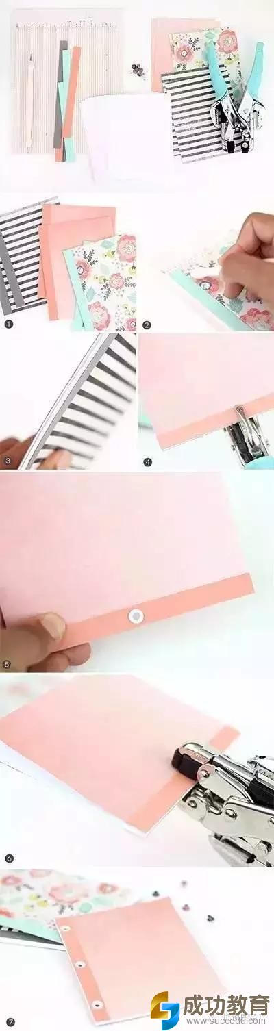 ▼包装纸做书皮,diy打孔笔记本,比买来的还要漂亮哦~