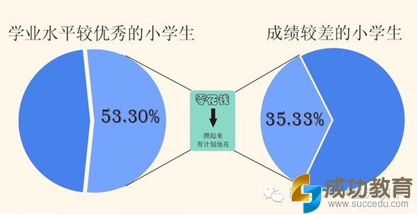 在成绩优秀的小学生中,随自主管理零花钱能力的提高,其学业优秀的比例也直线上升。53.30%学业水平较优秀的学生会将零花钱“攒起来,有计划地 花”,比成绩较差的小学生高17.97%;相反,随心所欲,给多少花多少的学生中,成绩较差的为13.91%,学业水平较优秀的仅为3.12%。