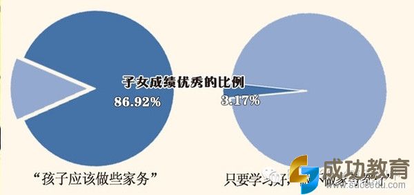 这样看来,并非把所有的时间都留给孩子学习和休息才是明智的选择。那些认为“只要学习好,做不做家务都行”的家庭中,子女成绩优秀的比例为3.17%,而持有“孩子应该做些家务”观点的家庭中,此比例为86.92%,两者相差悬殊。