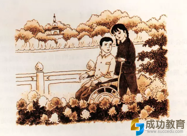 又是秋天,妹妹推着我去北海看了菊花。黄色的花淡雅,白色的花高洁,紫红色的花热烈而深沉,泼泼洒洒,秋风中正开得烂漫。我懂得母亲没有说完的话。妹妹也懂。我俩在一块儿,要好好儿活……