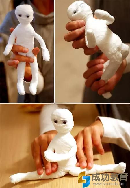 做法2:用软铁丝,做出木乃伊的身体框架,绷带缠绕出身体,再贴上眼睛!木乃伊机器人完成,快给它摆一些pose。