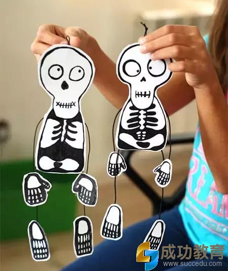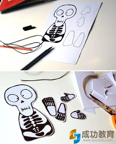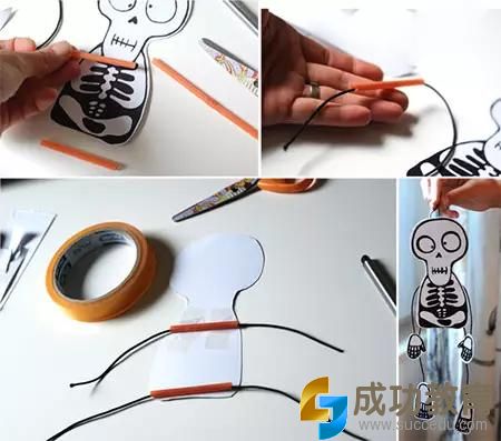 做法2:DIY骷髅拉线木偶,让孩子玩不够的万圣节玩具还用花钱买吗!