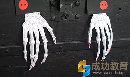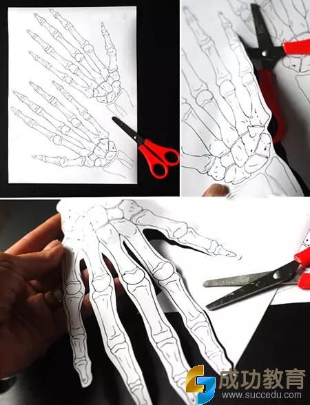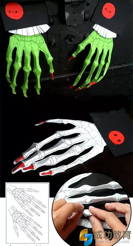 做法1:A4纸打印出骷髅手的骨骼框架,捏出立体感后,涂上颜色。看,立体十足的骷髅手就完成了。
