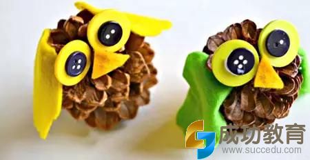 做法2:现在正是收集落叶的大好时候,创意无限,不同的树叶造就不一样的猫头鹰。