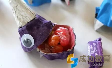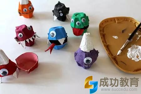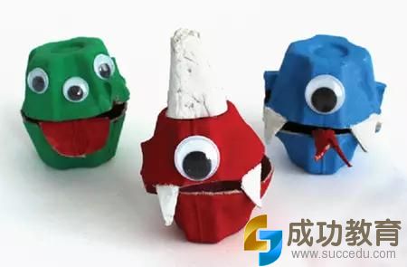 做法2:鸡蛋托,随手贴贴、画画,DIY怪物讨糖盒,提着它去玩讨糖游戏,够创意吧!