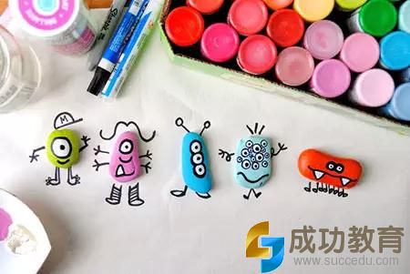 做法4:到大自然收集一些石头吧,简单的画个眼睛、嘴巴和牙齿!哈,原来每块石头都是一只可爱的小怪物呢!