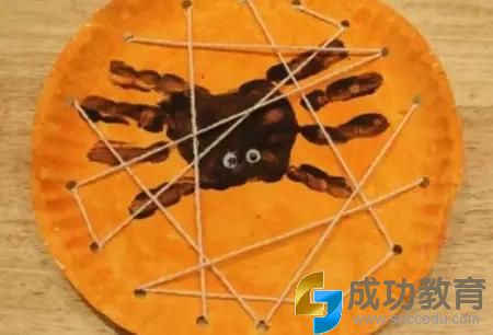 做法3:手掌印出蜘蛛的样子,DIY纸盘上的蜘蛛