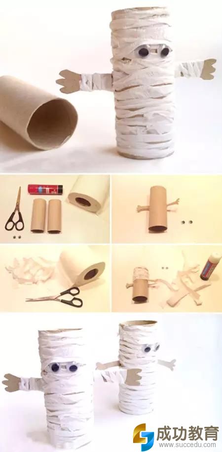 做法1:用卷纸芯和卫生纸DIY萌萌的木乃伊宝宝,很想抱抱它吧!