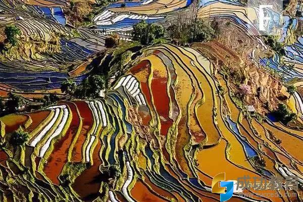 进入云南,眼前的画面换成了红的底色:褚红色的土壤,深红色的枫叶,金红色的晚霞,天际的雁群,“万类霜天竞自由”,所有的秋的元素交织在一起,构成了绚烂之极的彩云之南。也只有这样坐着火车,才能将沿途的美色都揽入怀中吧!