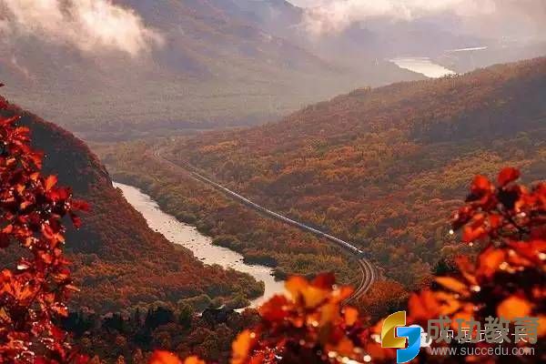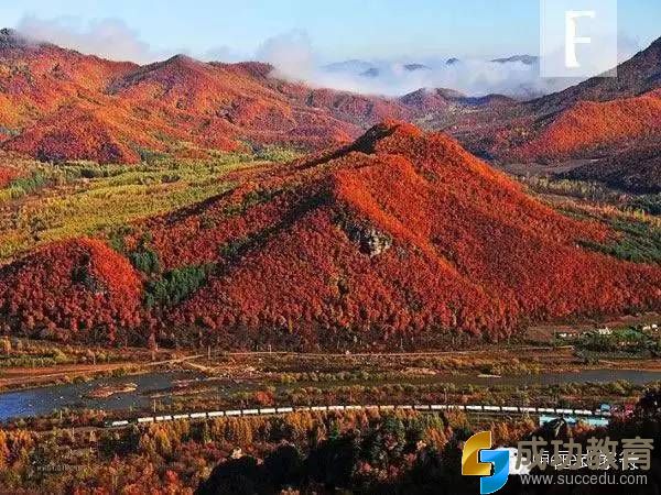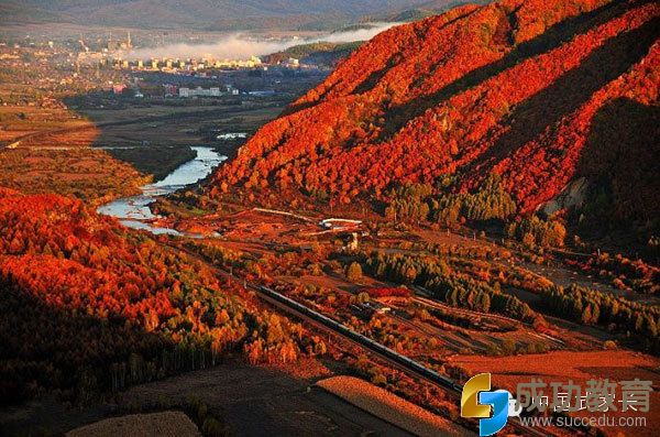 值 得推荐的是伊春市南岔附近的仙翁山,它不是特别著名的景区,却能极好地近距离欣赏“铁道秋色”。十月下旬,仙翁山附近的群山早已经层林尽染,登高远望,绥 佳铁路沿山脚下的汤旺河蜿蜒而行,列车穿梭在红色的山间,宏大的画面,迷人的色彩,震撼极了!若赶在日出前攀上山巅,还能欣赏到河谷间弥漫的带有几分神秘 风情的晨雾~