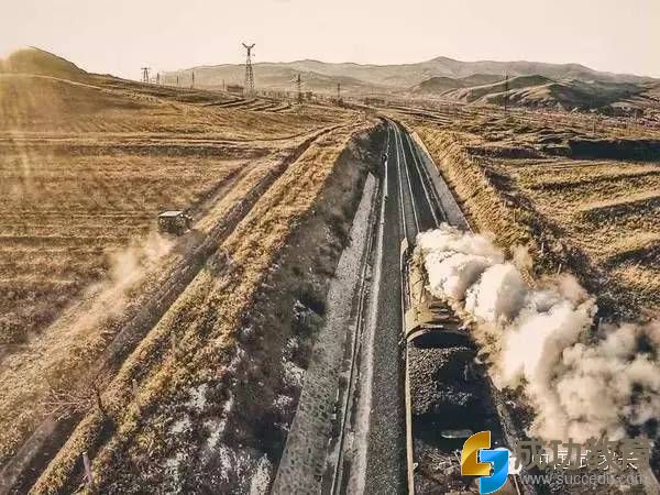 在 苦寒中的漫山积雪与颠簸小路的映衬下,蒸汽机车顶部的烟囱中喷薄而出滚滚白汽,显露出属于工业革命时代的辉煌。枯黄的植被伴随若隐若现的雪紧紧裹附在大地 上,孤独的道路通向遥远的天际。在汽笛声中,机车吭哧吭哧地驶过克什克腾旗冬日里银白与枯黄相间的美丽山野,令人心旷神迷。