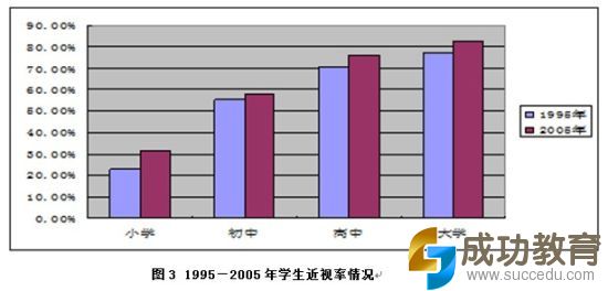 当前和今后一段时间,中国青少年体质健康问题仍然会很突出。其他的不说,我们只看其中的一个指标,近视发生率。十年前的调查(2005年)显示,学生近视率居高不下,小学生为31.67%、初中生为58.07%、高中生为76.02%、大学生为82.68%。现在这个数字更大,因为中国青少年的近视率更高。小学没有毕业,一半以上的孩子都近视了。高中没有毕业,90的孩子近视。