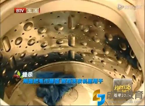 1、首先用200毫升的米醋浸湿毛巾,并将其放进洗衣机甩干