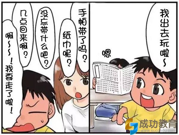 母亲:慢慢来,我教你,这题是这样写的。 父亲:玩心大发,还要孩子一起帮忙看看成果。 6到公园玩时