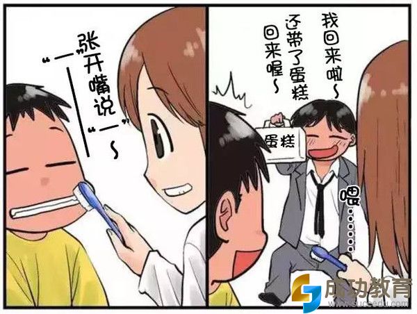 母亲:要好好刷牙,才是乖宝宝。 父亲:我带蛋糕回来了!赶快来吃! 4帮孩子拍照
