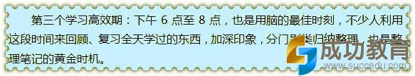 为提高学习效率,要善于发现并充分利用自己独特的最佳时间段,同时,要养成在固定的时间进行学习的习惯。