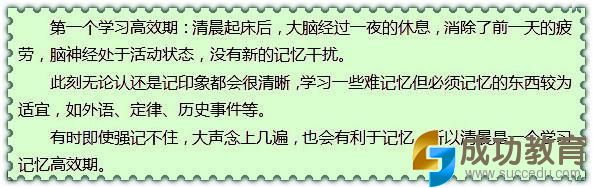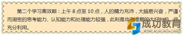 生理学家研究认为,一天之内有四个学习的高效期,如果使用得当,可以轻松自如地掌握、消化和巩固知识。