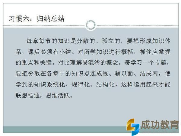 一把钥匙对应着一扇门,只有获得了钥匙的人才能成功地打开这扇门,进入门内欣赏到里面的光景。学习也是这样,没有找到打开成功之门的钥匙的话,就只能在门外徘徊。智力、勤奋都不会输给别人,成绩就是不如别人好的原因就出在这儿。