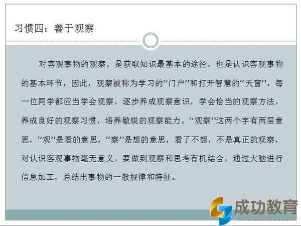 好的学习方法、习惯就是打开学习之门的钥匙,它可以在提高学习效率,取得更好成绩上助你一臂之力。就拿我精英班的孩子来说,最典型的就是年前来的一个小学五年级的孩子,刚来的他,经常上课捣乱打扰其他同学课堂学习,回到家丢掉书包就是打游戏,经过一段时间的努力,渐渐地对学习感兴趣了,下课积极和同学讨论作业。
