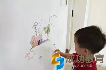 3、即使孩子知道在墙上作画不对,但在他们眼中,墙面就是巨大的、空白的画布,好奇心、新鲜感会促使他们尝试在墙上涂画的感觉。