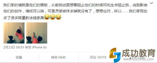 近日,孙俪发微博晒出等等和小花妹妹在墙上“作画”的趣事。看到两个小宝贝如此尽兴地创作,妈妈孙俪也开心地表示赞成……