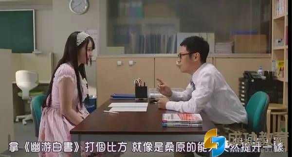 坪田老师用耶加最喜欢的漫画《幽游白书》来讲解历史;在她快放弃的时候鼓励她:虽然答案都错了,但答得很有创意。
