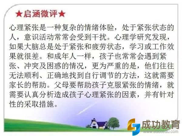 如果出现上面介绍的症状,孩子或许正感觉到一些紧张。不要直接去询问,首先从增加亲子间的谈话,自然地打探出孩子不安的情绪开始吧!然后,在家的时候温柔地将孩子抱在怀里让孩子平静下来。