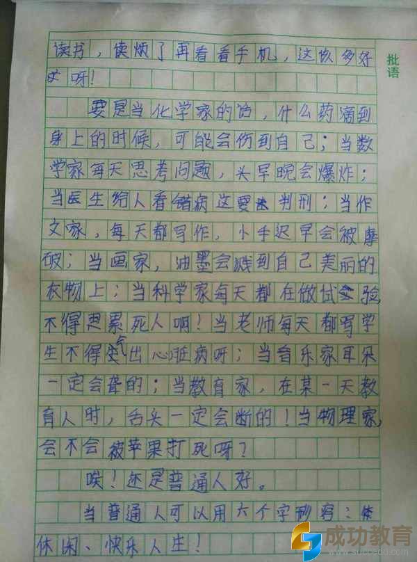 前几天,某晚报记者给我发了两张图片(见下图),是一个6年级孩子的写的作文,题目是《我的理想》。她看完后,咨询我“这个孩子是受什么影响,怎么会有这样的想法?”