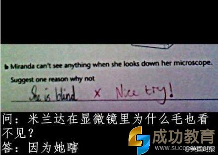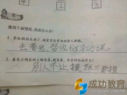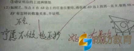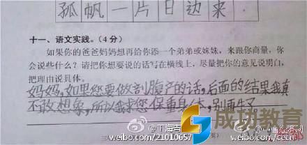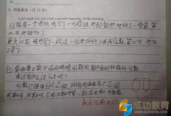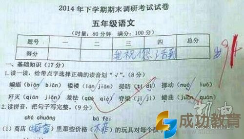 学生对分数也是非常重视,为了多考些分数,满足自尊,求得老师的表扬,家长的褒奖,平时努力学习,临阵学习磨枪。也是挺不容易。更有一些学生,挖空心思在试卷上作文章,想另辟路径,多得几分,于是,就出现了下面的一些让老师云里雾里,啼笑皆非,看不明白的试卷。