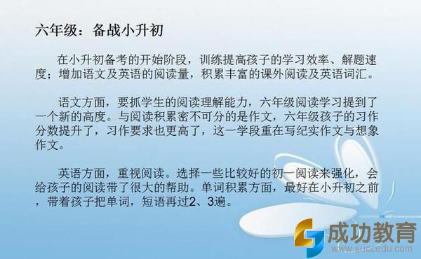 六年级的孩子要学会要调整自己的心态,踏实学习,不能因为还仅有几个月的时间就放弃。现在学,永远来得及。在六年级,孩子的父母一定要给孩子足够的信心。