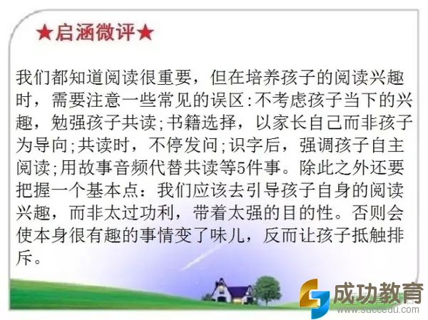 久而久之,阅读就不再是一样快乐有趣的事情,而变成一种负担,最终导致孩子对阅读提不起兴趣。