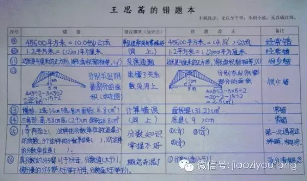 所以孩子需要一个错题本,把出错的问题分门别类地记录下来,以供平时翻看和考前复习