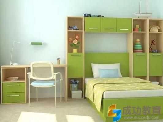 孩子的天性都是活泼好动的,经常会出现一些磕磕碰碰的情况,所以儿童房内任何家具都要有安全的保证,特别是孩子经常接触的书桌,一定要线条圆润流畅,以免出现孩子受伤的情况。
