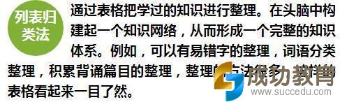 利用列表归类法,可以系统地梳理整个章节、整本书的脉络。这可以帮助孩子能在考试中快速捕捉到考试要点。