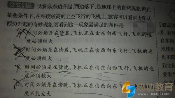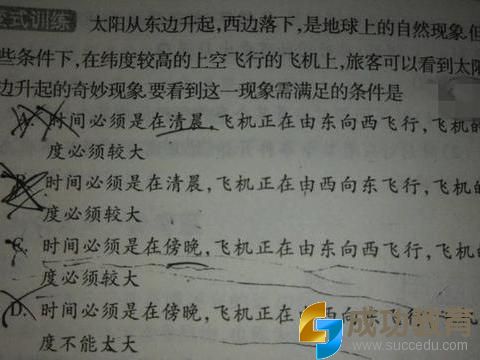 1、太阳从东边升起,西边落下,是地球上的自然现象,但在某些条件下,在维度较高的上空飞行的飞机上,旅客可以看到太阳从西边升起的奇妙现象,要看到这一现象需满足的条件是()